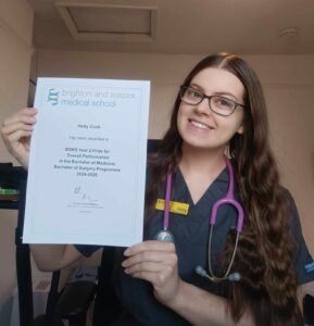 My name is Holly, and I am currently in my third year at Brighton and Sussex Medical School and I am absolutely loving every moment! This year has been incredible as I’ve thrown myself into learning the clinical aspects of medicine during hospital placements and embraced every opportunity to grow and contribute. The past few years have been so rewarding and fulfilling, always learning about something interesting.