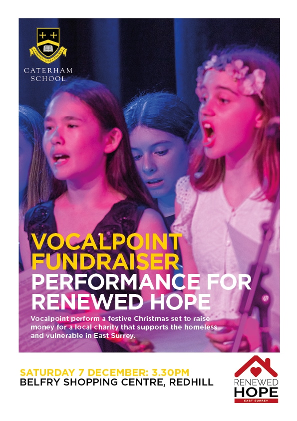 Vocalpoint perform a festive Christmas set to raise money for a local charity that supports the homeless and vulnerable in East Surrey.