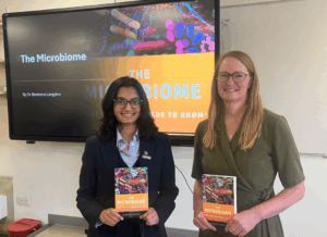 The Darwin Society was delighted to welcome Dr. Berenice Langdon to the Biology Department this week to give a talk about the microbiome. Not only is Dr Langdon a GP, senior lecturer and honorary consultant at City, St George’s Medical School, but also a published author. She started her talk by discussing the definition of the microbiome and the misleading reporting about the microbiome in both the popular and scientific press. The audience were enthralled by the facts Dr Langdon shared, such as our gut microbiome releases as much energy as there is in a four-fingered KitKat, an average sized apple is covered in about 100 million bacteria (after being ‘washed’) and there are more microbes in a glass of tap water than in your stomach!